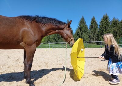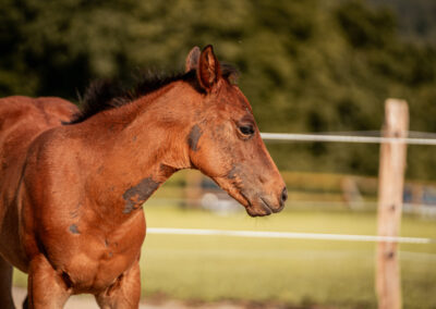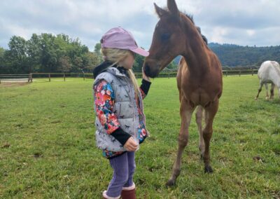 Jassi je v pořadí druhé hříbátko, co se u nás na stájích narodilo. To první byla její matka „Čensí“. Jassi je velice přátelská, komunikativní a zvídavá. Po tatínkovi – legendárním „Šikulovi“ zdědila barvu, nebojácnou a klidnou povahu. Po mamince se rychle učí a to, co se jednou naučí, to už umí napořád. K lidem je velice důvěřivá, zatím nikdy nezažila zklamání ze strany člověka. Ví, kde je hranice a co všechno si může a co nemůže dovolit. Je přátelská i k těm nejmenším dětem a nechá si od nich všechno líbit.